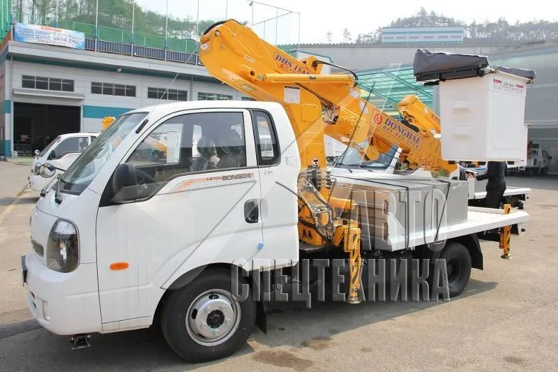 Автовышка Donghae DHS15AP корейского производителя Donghae Machinery подходит для работ в сферах городского и коммунального хозяйства в Твери: выполнение электромонтажных работ, монтаж рекламных щитов и конструкций, ремонт кабельных линий. Также может использоваться в строительных работах. Она состоит из бортовой платформы и крановой установки с рабочей высотой стрелы 14,5 м.